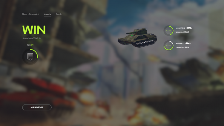 The player who scored the most points in the battle is shown in a special layout of the results as the best in the match. It shows his killings, assists, deaths and other indicators. Such as damage, maximum series of kills raised bonuses on the map in TDM and brought, returned flags in the event of a CTF battle. Also, each tanker who participated in the battle can see the preset of the best player and the pumping of its modules.
