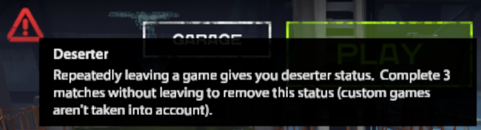 If a player has left early 2 battles from the last 4, he gets the status of "Deserter".