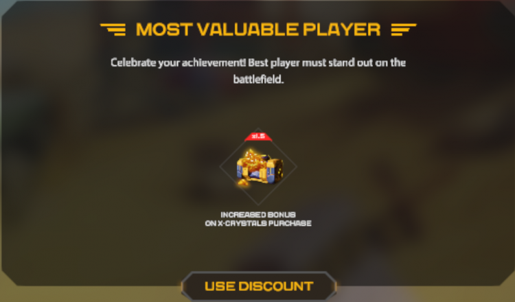 Players who do well in battles and reach MVP may sometimes receive special discounts or bonuses for the in-game purchases of X-Crystals.