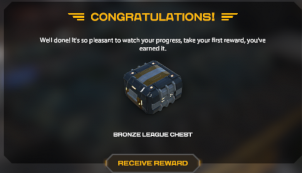 After completing their trainig battles recruit players obtain a free bronze league container after each training battle as a reward for completing them and to introduce the modules.